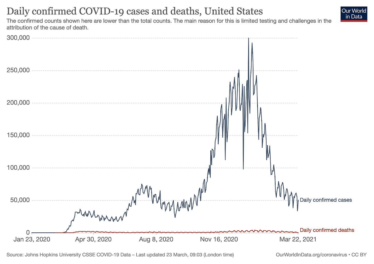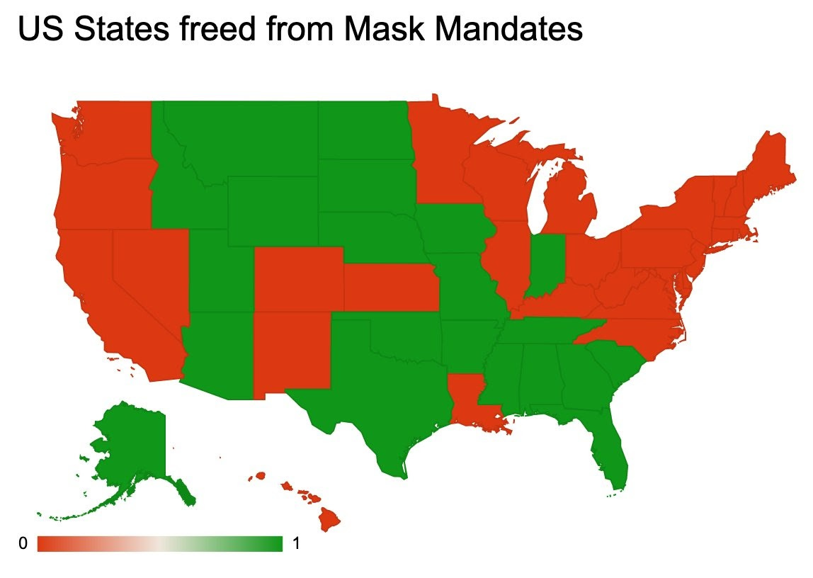 Daily COVID cases nationwide continue their downward spiral (despite mask mandates continuing to end nationwide. Governor Eric Holcomb announced Indiana will lift its mask mandate on April 6th, which will make Indiana the 21st state freed.