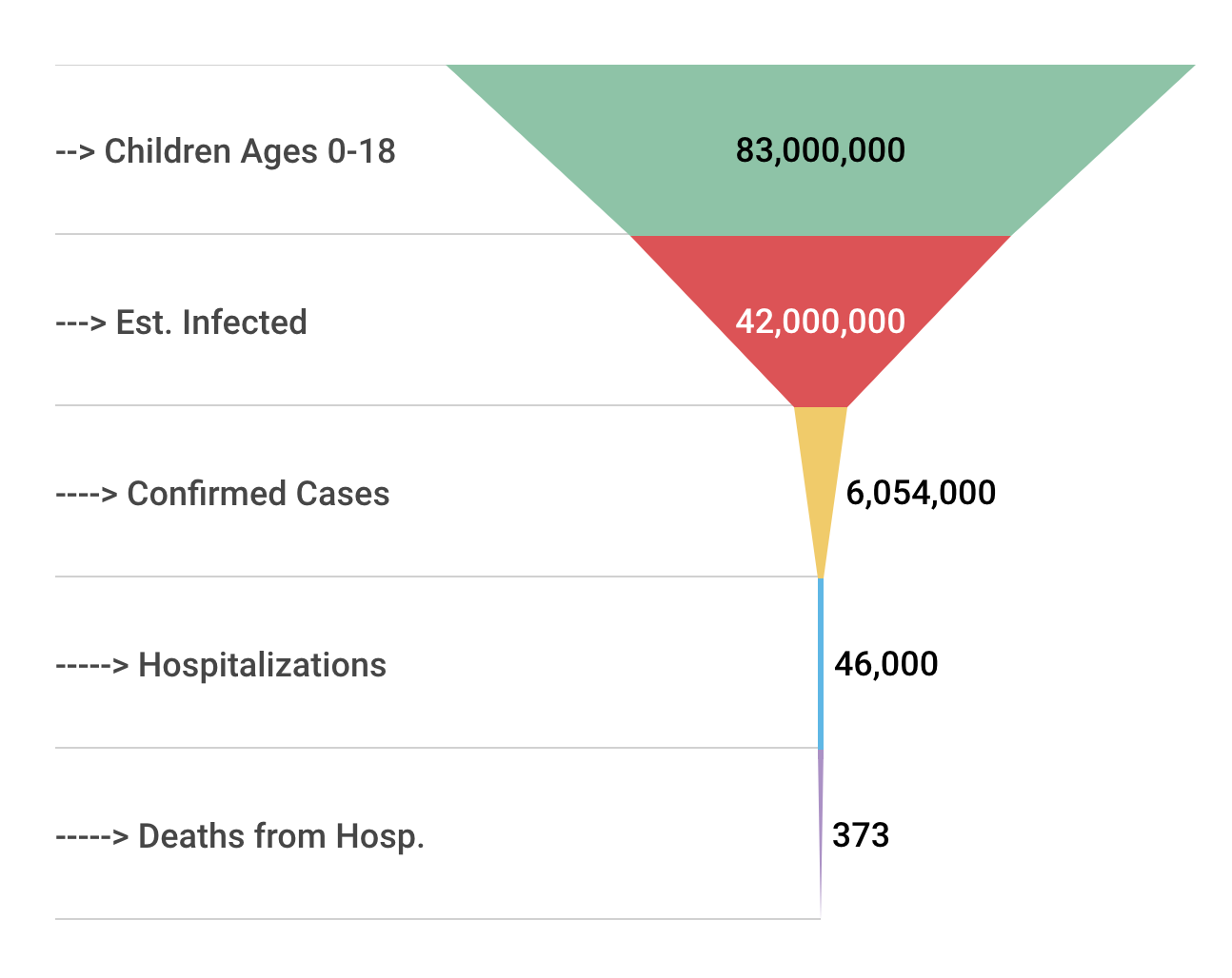 In July the CDC estimated that some 43% of children had already contracted the disease. While the overall numbers denotes 900+ deaths in that age range there are only 373 deaths with a confirmed hospitalization.