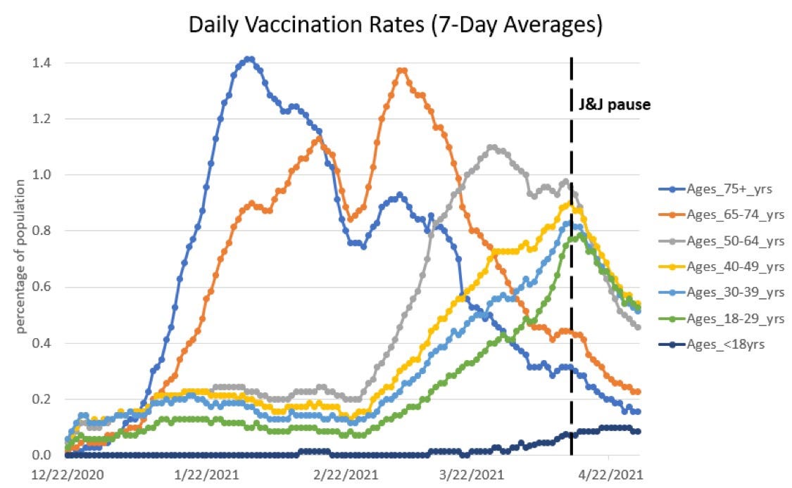 Continued coronavirus restrictions aren't commensurate to risk. With the COVID-19 vaccine now widely available in the U.S., nearly any adult who wants to protect himself can, while anyone who doesn't get vaccinated is making a choice to face heightened risk. And despite slowing vaccination rates, we're still seeing encouraging signs. For instance, "Los Angeles County public health authorities on Sunday reported no new deaths related to COVID-19," the Los Angeles Times notes, and the single-day infection rate in New York state dropped below 1.5 percent on Saturday. Overall, "42 states and D.C. report[ed] lower caseloads for the past two weeks," The Washington Post reported last Friday.
