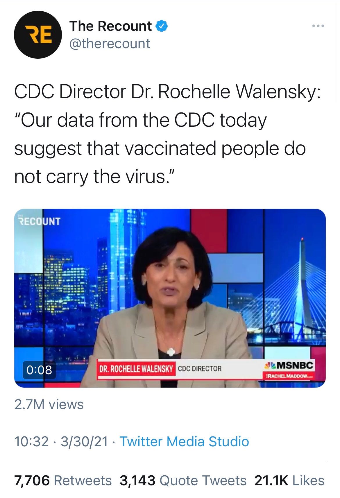 A month later Walensky took it a step further: