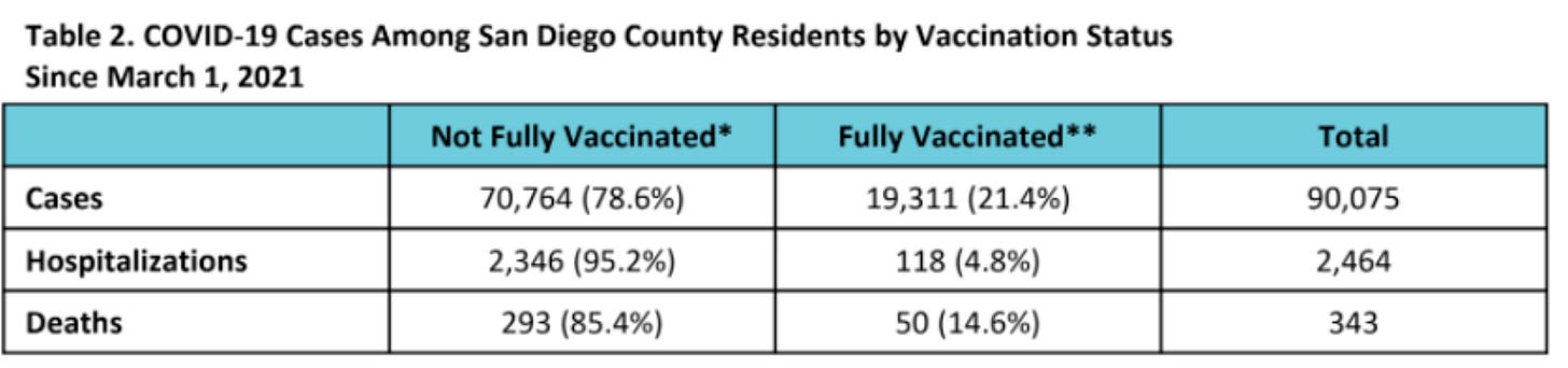 40% of all cases in San Diego county are from fully vaccinated people and almost 20% of all deaths.