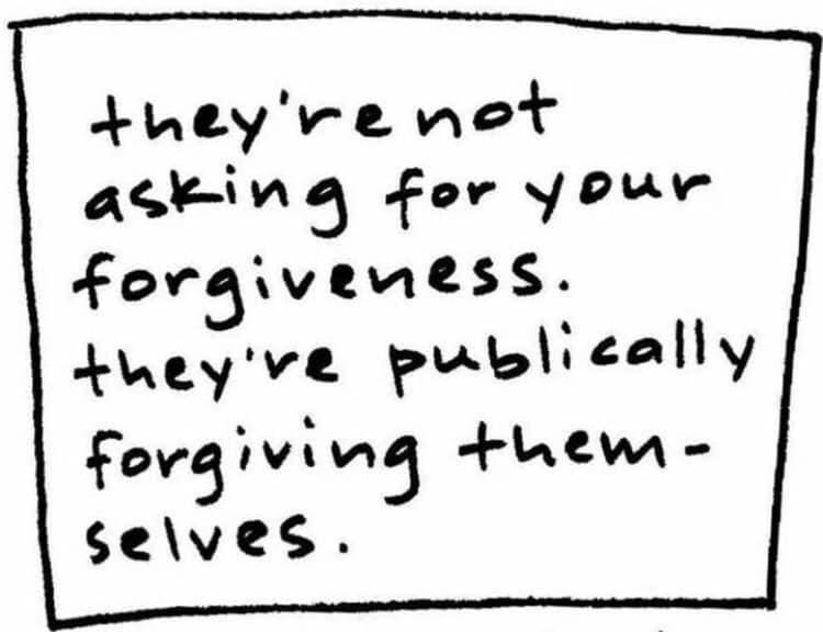 As one meme notes: “They’re not asking for your forgiveness - they’re forgiving themselves.”